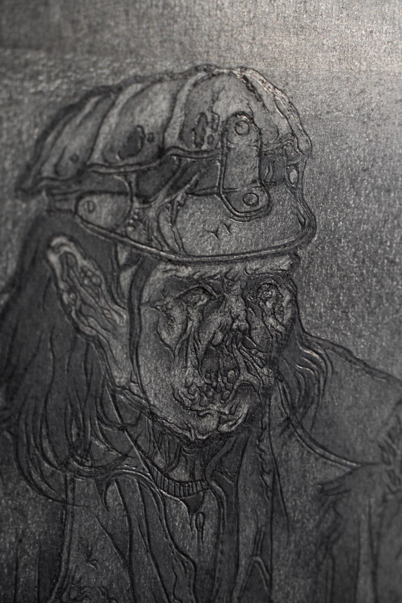 Searching for them, 2025, graphite on ceramics, 56x35cm