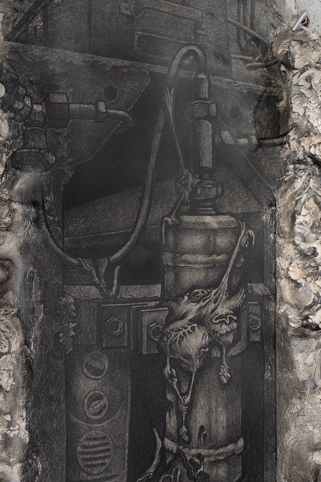 Derelict Site I, 2025, graphite on ceramics, 51.5x26cm