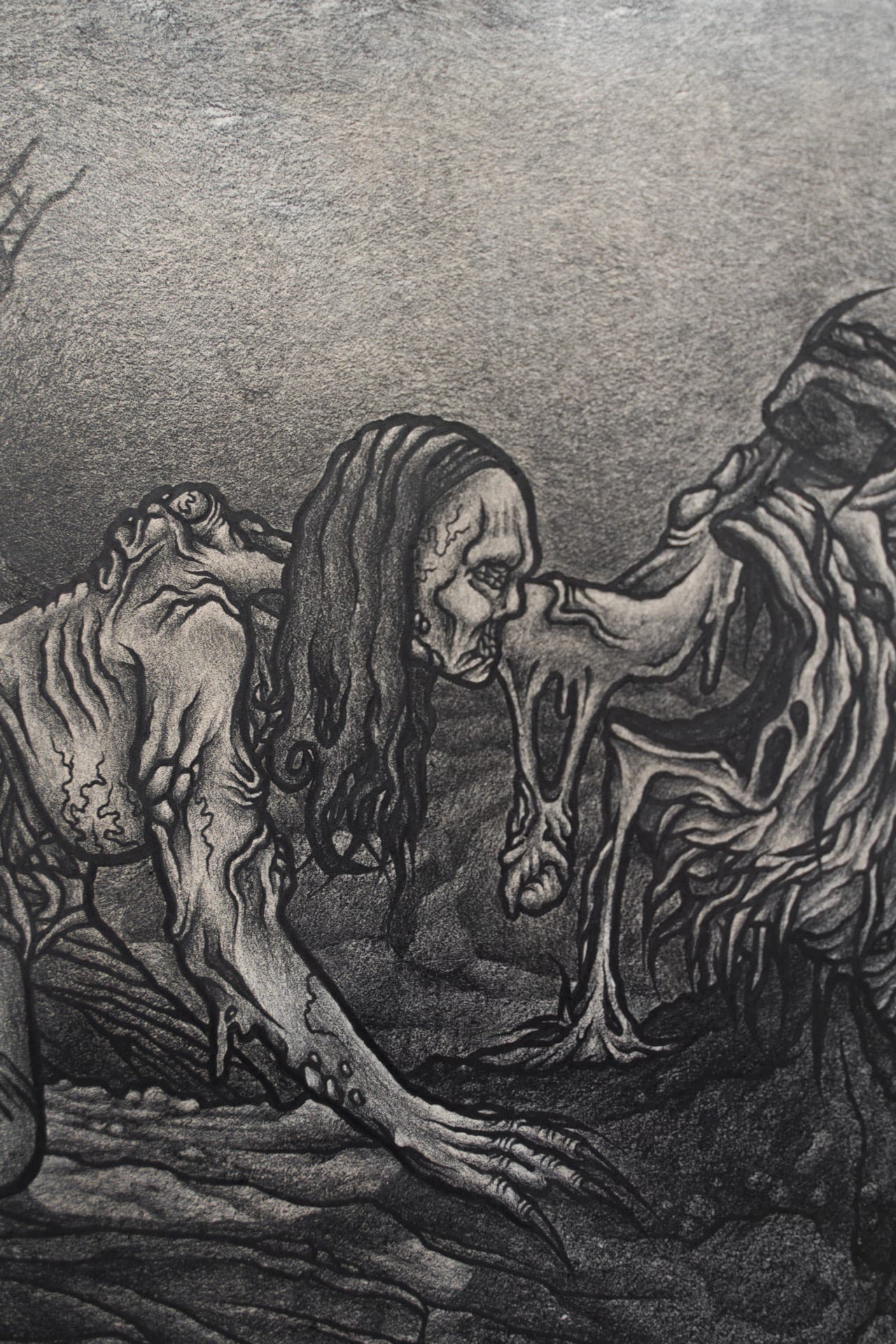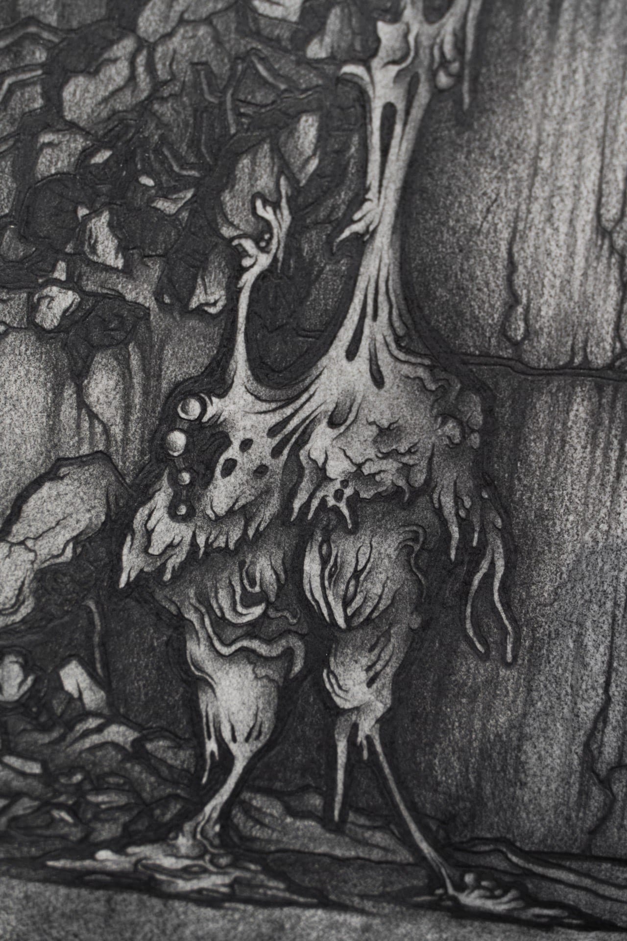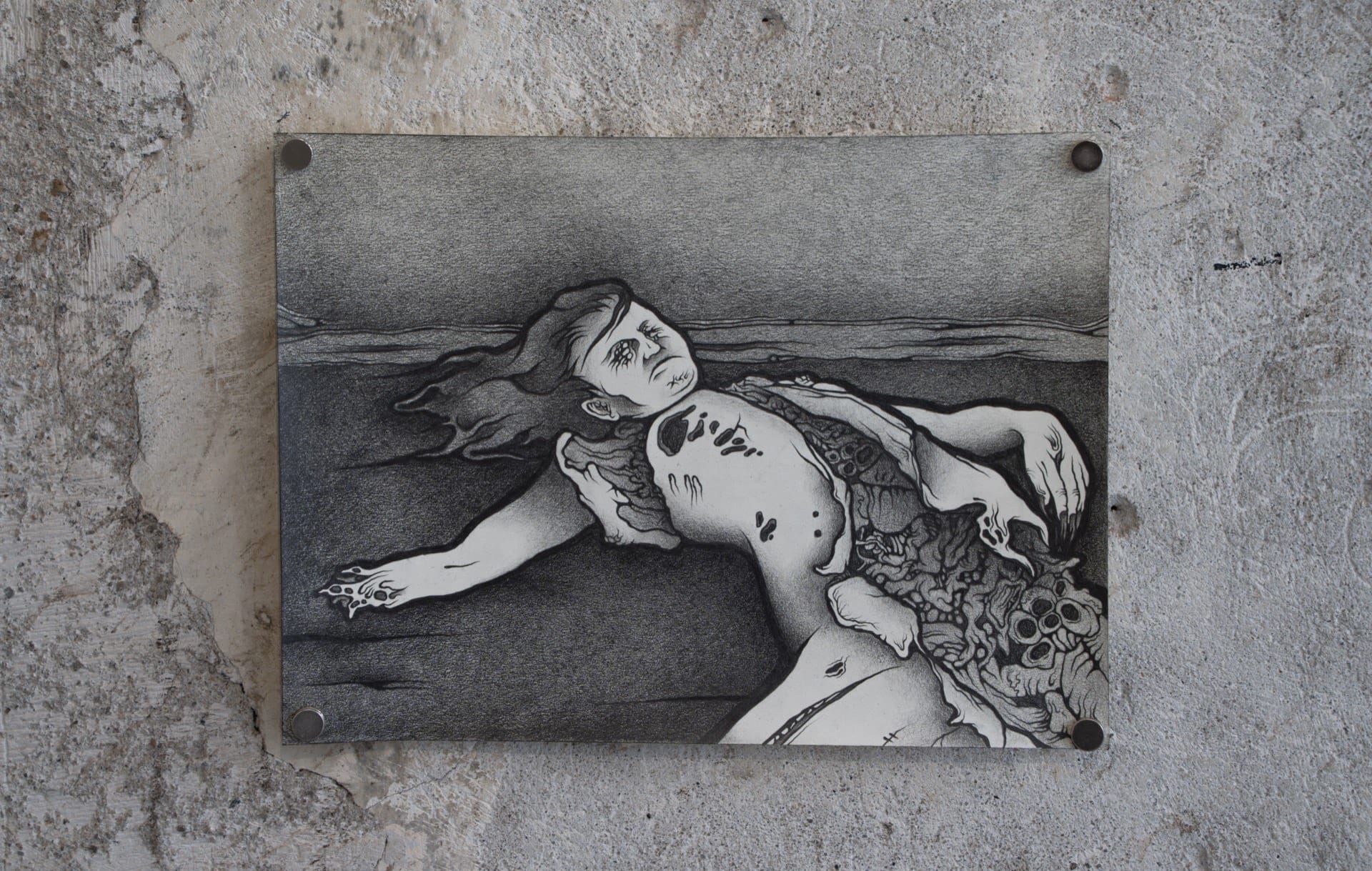 1. Injured, 2023, graphite on air-dry clay, 20.2x15.6cm 2. Rotting, 2023, graphite on paper, 25x18cm