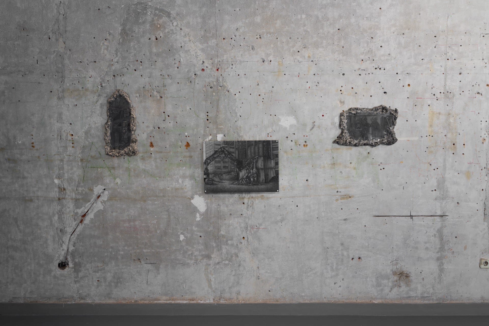 David situates his practice in the present, with his works serving as instances of a dynamic in which fragments of the past become active, reconfiguring both the gallery space and perceptions of a territory where historical, social, and material layers coexist in unstable tension. In this framework, any process of disintegration, regardless of scale, may generate conditions for possible reconfiguration. Rather than indulging in a melancholic contemplation of ruin, the exhibition proposes a space of latent possibilities, where what appears to be an end serves instead as a threshold toward a new organization of matter and memory—revealing the ways in which identity and space undergo a continuous process of becoming.