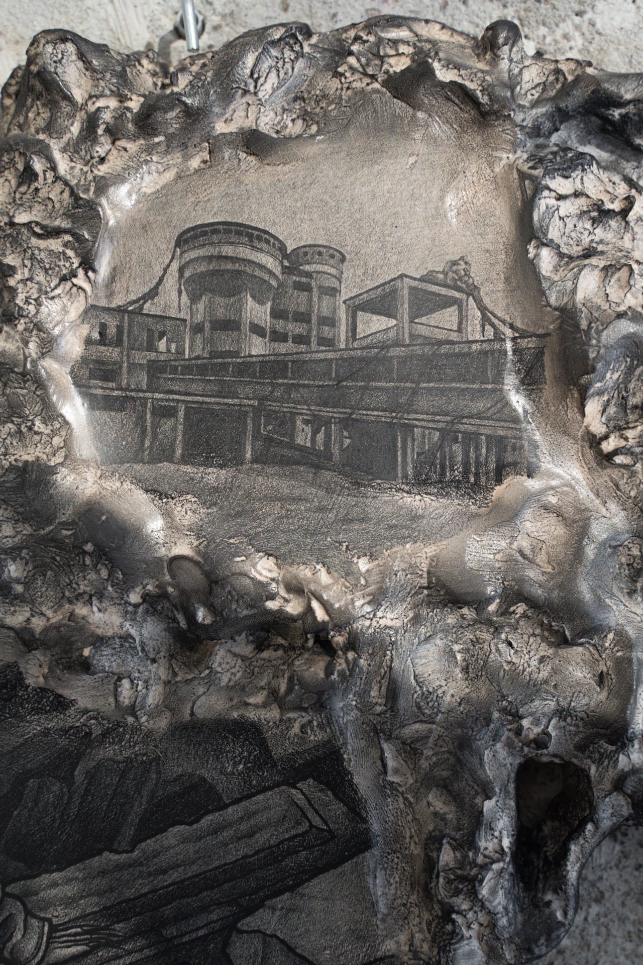 Derelict Site II, 2025, graphite on ceramics, 41x28cm